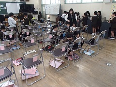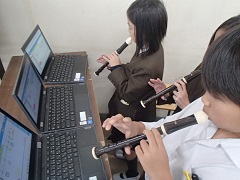 タブレットを使ってグループごとに「とりしまばやし」を作って演奏していました。