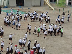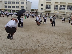 今週は、なわとび週間です。15分休みに、たてわり班ごとに大なわをしています。苦手な児童もいますが、たてわり班で教えあいながら練習する仲で、だんだん上達しています。
