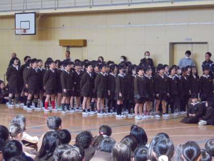 1〜5年生は、心をこめたメッセージと歌を6年生に贈りました。