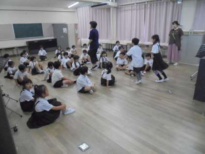 体を動かしながら、クラスのみんなと楽しんでリズムの学習をしました。