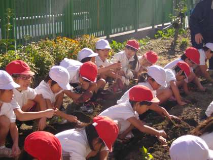 お水やりのおかげか、今年は大きさもそろっていて、たくさんのおいもが収穫できました。一人1個ずつお気に入りのおいもをもらって、残りはお芋パーティー用です。お芋パーティーが楽しみです。