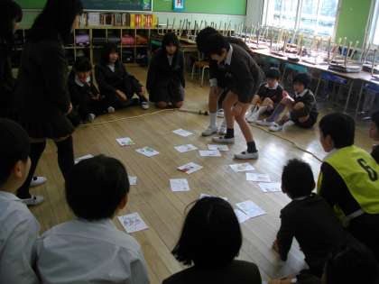 進めていくと、だんだん盛り上がってきます。けんかになることはないのですが、写真のような光景が、どの教室でも見られます。それだけ、みんな真剣に取り組んでいます。