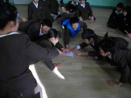 だんだん残り札が少なくなってきて、とうとう2枚になると、何年が呼ばれるか、みんなドキドキです。呼ばれた学年は、放送を聞き入って最初の一声が聞こえると、跳びつきます。同時の時は、じゃんけんで決めます。