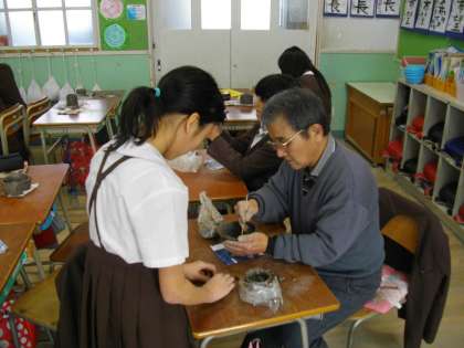 5.6時間目をほとんど使って、全員できました。しばらく乾かして、先生が焼いてくださり、卒業式前に焼きあがった物を持ってきてくださいます。