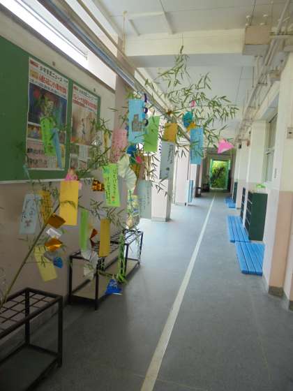 1年生が願い事を書きました。「けいさつかんになれますように」「けーきやさんになれますように」「みんながなかよくできますように」