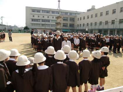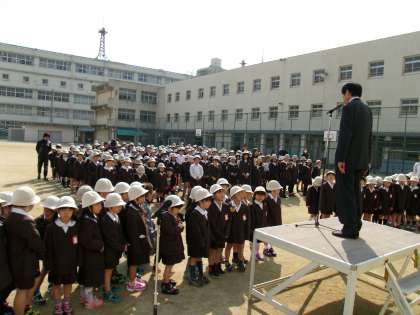 4月9日には、3年生4年生5年生も、みんなとの対面式をしました。1年生が前に並び、校長先生からお話や、6年生の代表の児童から歓迎の言葉がありました。1年生はお礼に「ありがとうございました。よろしくおねがいします」とみんなでそろって、大きな声であいさつをしました。