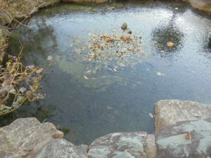 1月25日(木)。朝、学校に来ると、池に氷が張っていました。先週の寒波の時は1つの池だけ氷が張っていましたが、今日は2つともです。職員室の廊下に置いてあったバケツにも氷が張っていました。下に葉っぱのような氷が付いていてとてもきれかったです。運動場の手洗い場も、朝は水が出ませんでした。