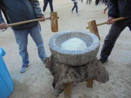 1月13日(土)には、酉島連合町会主催の『餅つき大会』がありました。杵と臼でついた餅はとてもおいしかったです。きな粉と餡がありました。