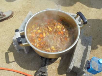 ご飯は薪で炊きました。火の勢いが弱く、強火になるように、うちわで一生懸命あおぎました。あまり焦げ付かず、うまく炊き上がりました。おいしいおこげができました。カレーもうまくできあがり、とてもおいしいカレーライスでした。あっという間になくなりました。おなか一杯になりました。