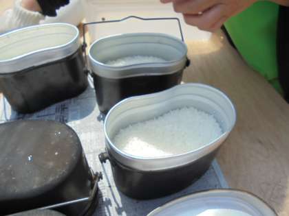 飯盒でご飯を炊き、大きな鍋でカレーを作ります。4つの班に分かれて行いました。保護者の方もたくさん参加してくださいました。