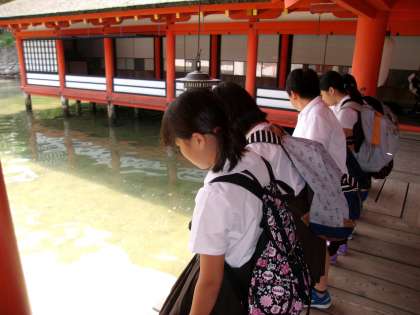 2日目は、宮島へ行きました。歴史的に有名な厳島神社を見学しました。海の中に立つ鳥居は、どこから見ても圧巻です。神社の造りを見て回って、中世の日本を学ぶこともできました。この後、宮島水族館を見学し、帰路につきました。