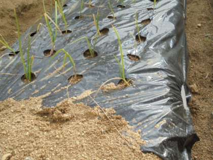 11月21日(水)3時間目、3年生がはぐくみネットの方と一緒に玉ねぎを植えました。細い苗です。