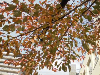 校庭の桜や楓がきれいに紅葉しました。11月も暖かい日が多く、また、台風の影響もあって、きれいな紅葉は見られないかもしれないと心配しましたが、今年もきれいです。天気のいい日の紅葉はとっても美しいです。季節の移り変わりを感じる心を育てたいです。