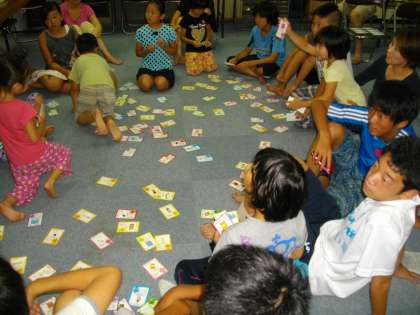 就寝まで、子ども達は防災マップを作ったり、防災の双六をして遊んだり、1年生から中学2年生まで、年齢は違いますが、仲良く過ごしました