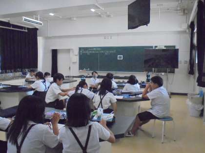 5年生の理科の学習の様子です。メダカと植物の受精の同じところ、ちがうところを一人で、また班で話し合って考えました。