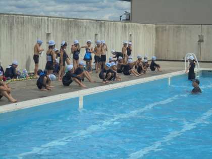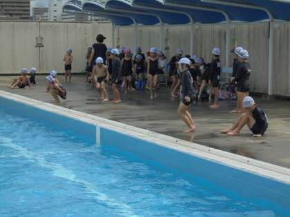 たくさんの水をかけるように、またプールにもぐって息を出せるように練習を頑張っています。