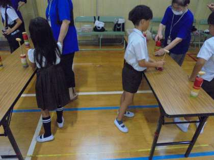 酉小まつりを行いました。たてわり班でお店を考えて、ゲームの内容やルールを子どもたちで話し合い、工夫しながら準備してきました。