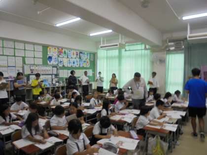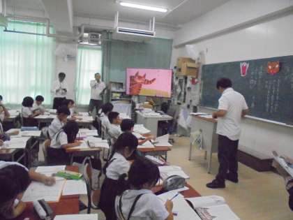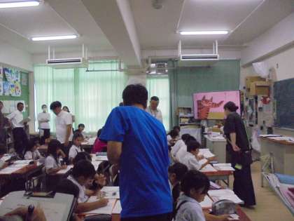 2年生の国語科の研究授業の様子です。普段ないたくさんの先生に囲まれての授業でしたが、緊張せず自分の考えを書いたり、発表することができていました。