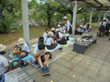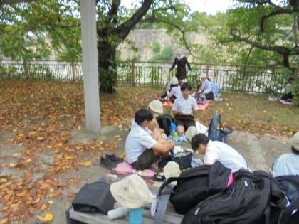 雨もあまり降っていない時間帯だったので、大阪城公園で昼食をとることができました。