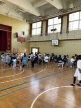 5月29日、児童朝会を講堂で行いました。校長先生、生活指導の先生のお話のあと、6...