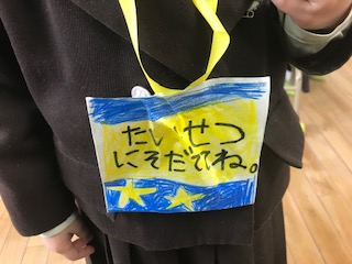 2年生から素敵なプレゼントもらいました。教室に帰っても大事そうに首からかけていました。2年生の皆さん、ありがとう!1年生の皆さん、大切に育ててくださいね!
