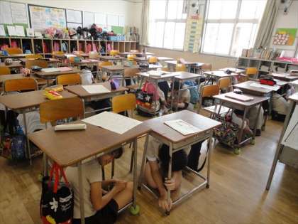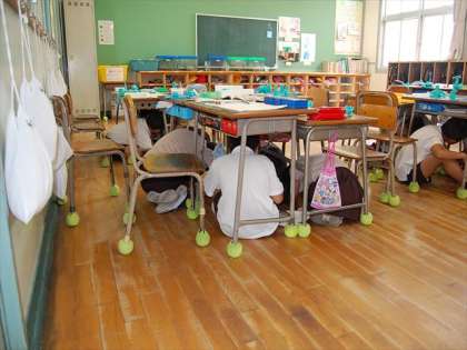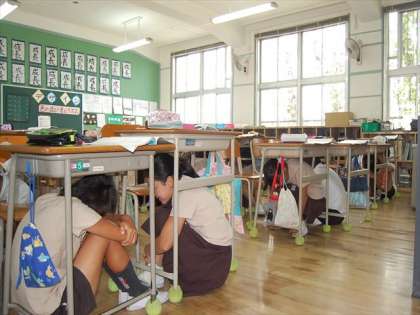午前11時の訓練放送や校内放送の指示をしっかりと聴いて「命を守るための行動」に取り組みました。