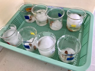発芽の条件を調べています。予想と結果、うまく導けると良いですね。