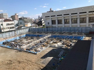 連休中も増築工事は行われていました!ずいぶんと土台の部分が進行しています。