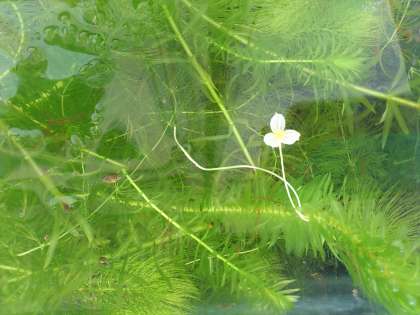 また、水草のアナカリスの花が開花しました。白い可愛い花を咲かせています。