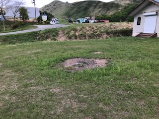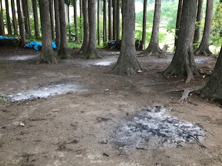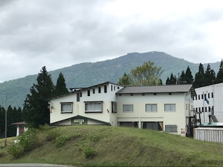 飯盒炊飯やキャンプファイヤーの場所も見せてもらいました。宿舎から見える氷ノ山にも雪が残っていました。
