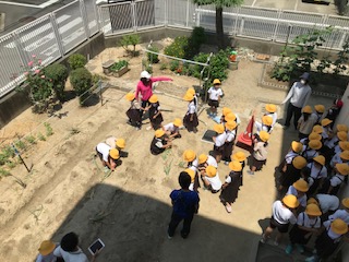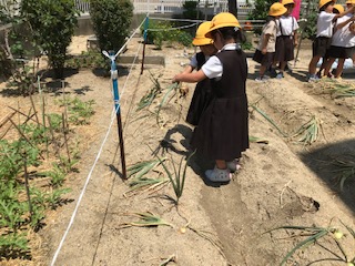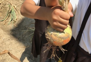 暑さを忘れるような歓声が上がっています。地域の方に大事に育てていただいた玉ねぎの収穫です。