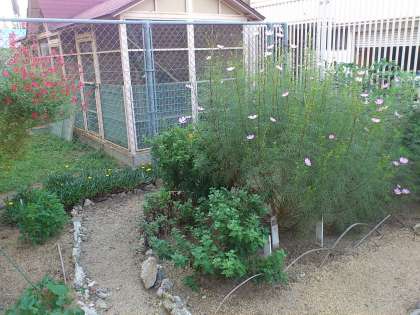 コスモスをはじめ、秋の花が見ごろです。また、今年はサツマイモの生育も順調で、いきいきとした青い葉が大変きれいです。収穫が楽しみです。