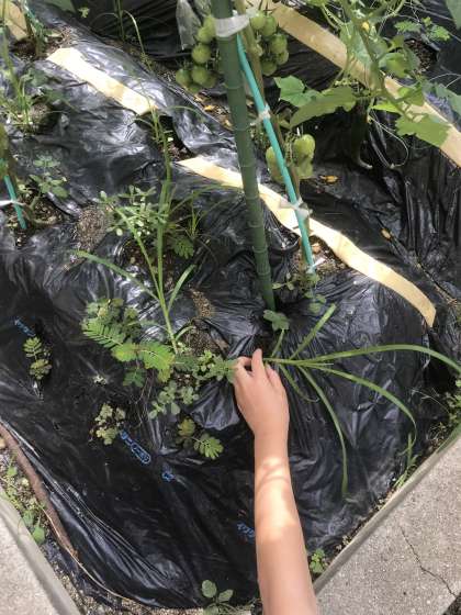 畑の雑草をみんなで抜いて、キュウリとトマトがさらに成長してくれると思います!