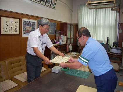 6月の「交通安全子ども自転車大阪府大会」に参加した児童も、参加の記念品をいただきました。