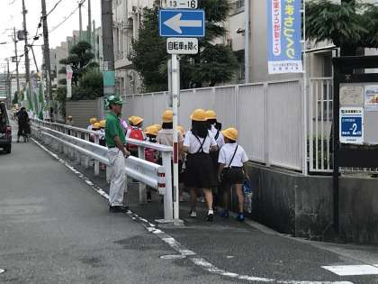 今朝は此花区青少年指導員連絡協議会の方々が『朝の挨拶運動』に来ていただき、子どもたちの登校を見守っていただきました。蒸し暑い中、ありがとうございました。