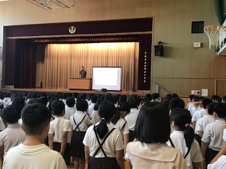 始業式で校長先生や生活指導の先生の話を聞いている子どもたちの顔は日焼けをして、少したくましく感じました。