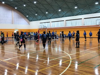 住友化学の体育館では、バレーボールが行われています。元気な声や歓声が響いています。