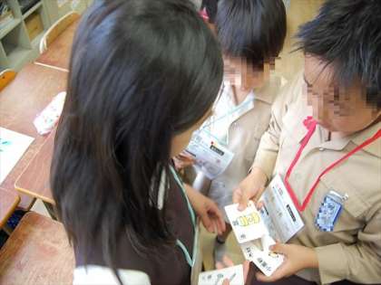 カードゲームを通して、製品を手に入れるまでの苦労やお金の歴史について学習しました。「物々交換」や「物品貨幣」などお金が存在しなかった時代の事についても興味深く学んでいる様子が印象的でした。