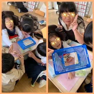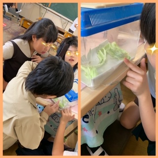 そして、3年チームは、モンシロチョウの幼虫の観察をしました。何匹ふ化するのか楽しみです。
