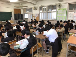 オルゴールの音色が心地よい読書タイム。こっそり教室をのぞいてみました。大変静かに過ごしていました。