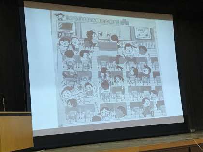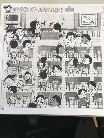 児童朝会で写真にあるような絵を見て考えました。いじめにつながるような日常生活をしていないかどうか自分自身を振り返りました。お家でも話し合ってください。