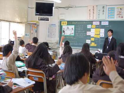社会科の歴史の学習で、日清・日露の戦争について考える学習でした。とても難しい内容でしたが、子どもたちはしっかりと自分の考えを持ち、意欲的に取り組んでいました。