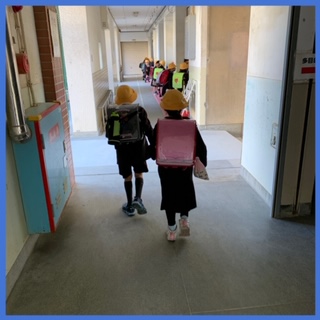 ほのぼのした登校は1年生。仲良く手つなぎで教室まで。