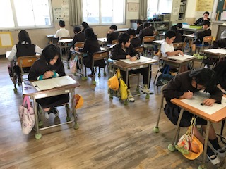 大阪市小学校学力経年調査です!今日は算数、理科です!鉛筆を走らせる音が教室に響いています。まずは算数です。