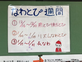 来週からなわとび週間が始まります。音楽に合わせてなわとびを行います。ご家庭でもぜひ試してみてください!