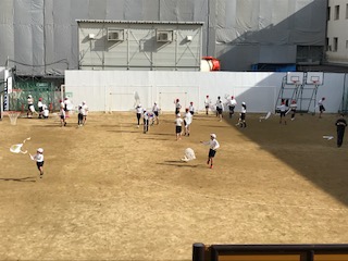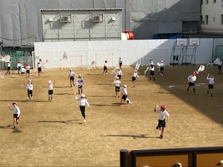 冬といえば昔は凧上げでした。今日は林間学習でできなかった凧上げをすることになりました。元気な声が運動場に響いています。