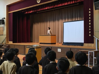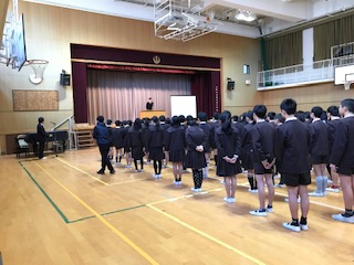 校長先生のお話の後、冬休みの生活指導、健康的な過ごし方について話がありました。