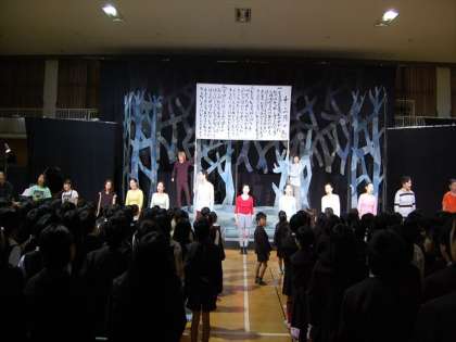 本事業は、文化庁が主催する「文化芸術による子供の育成事業」の取り組みで、本校の体育館を使って、全児童対象に行われました。
