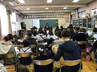 今日は令和2年度に入学する子どもたちの入学説明会です。まずはPTA活動のお話です!子どもたちのために仲よく楽しく活動できると良いですね。どうぞよろしくお願いします!