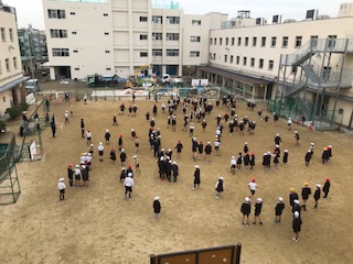 六年生が長縄を使った遊びを考えてくれました。運動場に歓声が響きます!